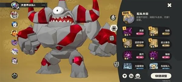 随后,开启“贪婪”状态增强输出,接着利用“岩土暴击”技能,可以快速击败对方的前两只宠物——千棘盔和裘卡。