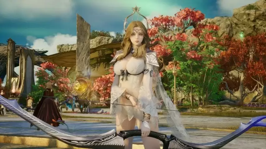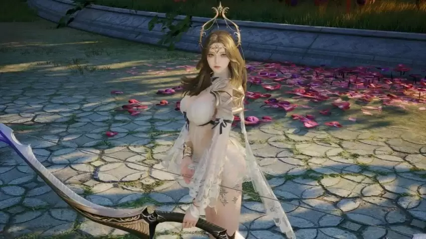 最后一套半透明纱质外观,搭配精致的头饰与修长的弓具,完美融合了神圣感与朦胧美。材质的轻薄透肤与配饰的典雅圣洁相互映衬,营造出一种既飘逸又充满诱惑力的视觉体验。