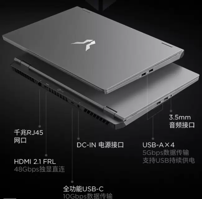 扩展能力是衡量游戏本实用性的关键。战7000在接口配置上相当慷慨:机身左侧集成了两个USB-A 5Gbps接口和一个3.5mm耳机麦克风二合一接口;右侧同样提供了两个USB-A 5Gbps接口,方便连接鼠标、键盘等外设;主要的高带宽接口则后置,包括一个千兆有线网口、一个支持高帧率输出的HDMI 2.1接口以及一个支持数据传输、视频输出和PD充电的全功能USB-C接口,充分满足多屏扩展、高速网络接入和快速充电的多元化需求。