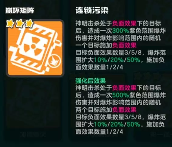 简而言之,崩坏矩阵是一个深度依赖“负面状态”的战术体系。敌方单位携带的减益效果越多,你触发引爆时造成的伤害加成就越惊人,同时扩散出去的负面状态也越广泛,这正是实现伤害指数级增长、形成碾压局面的关键。
