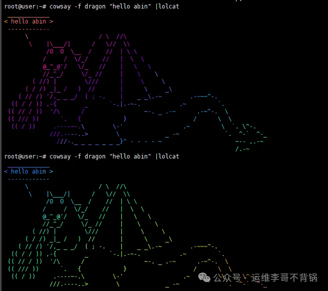 cowsay -f dragon "hello abin" | lolcat