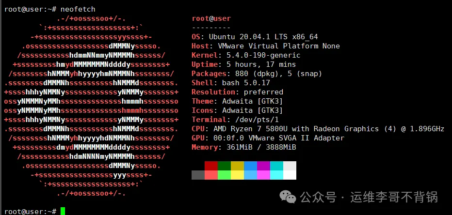 这可能是最实用的“炫酷”命令之一。neofetch能以极其美观的版式,在终端中清晰展示你的系统信息,包括操作系统、内核版本、主机名、桌面环境等,旁边还会配上系统的LOGO。