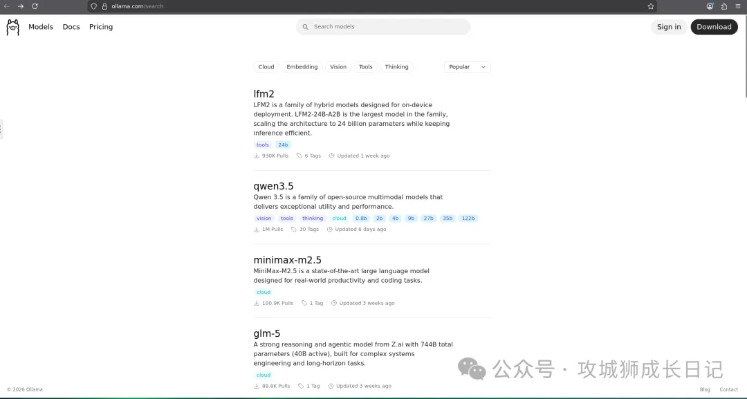 目前,Ollama支持的模型家族已经非常丰富,包括: