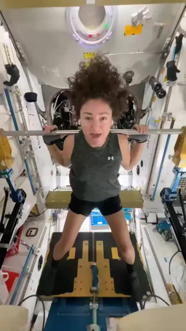 梅尔在视频里解释了宇航员们为何必须坚持锻炼:太空中没有地球重力,肌肉和骨骼失去了日常的负荷,如果不刻意维持,肌肉量和骨密度就会快速流失。所以,每日训练是太空生活雷打不动的环节。下面就是那段视频: