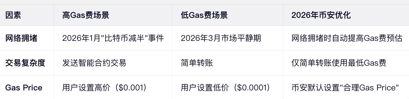 重要提示:本文基于币安2026年平台数据编写,不构成投资建议。链上交易有风险,请务必了解Gas费规则,避免因Gas费不足导致交易失败。