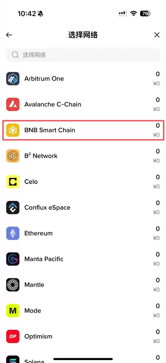 ✅ 第二步:关键选择——在网络选项中,优先选择BSC链(当前Gas费最低的链之一)。