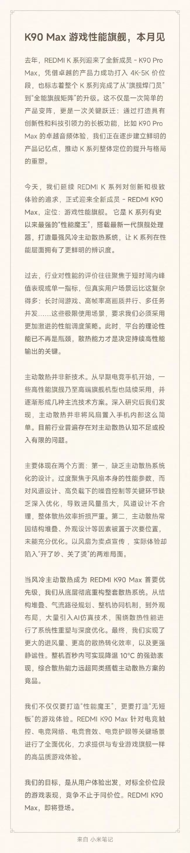 消息来了:小米 REDMI K 系列的首款 Max 机型——REDMI K90 Max,已经官宣将于本月正式亮相。这无疑给今年的性能机市场,提前添了把火。