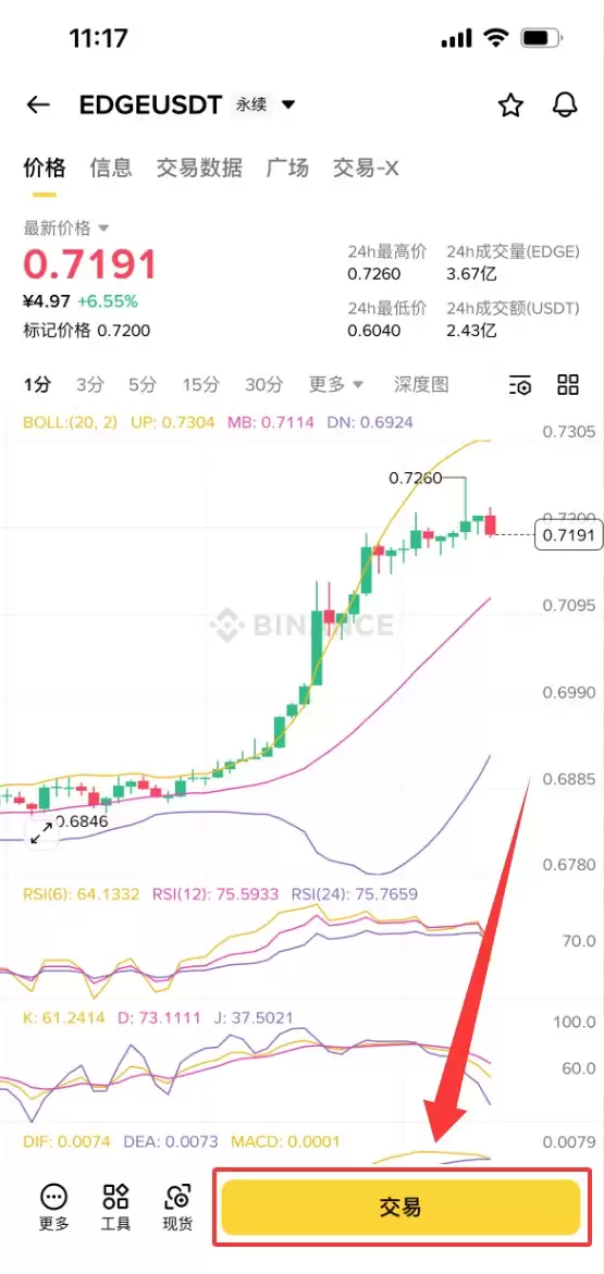 点击页面下方的【交易】按钮。
