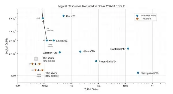 更具体的是,研究团队还设计出了两种可行的攻击方案,分别只需要大约1,200个或1,450个高质量的逻辑量子比特。这个数字,已经跳出了纯理论的范畴,进入了可预见的工程实现视野。