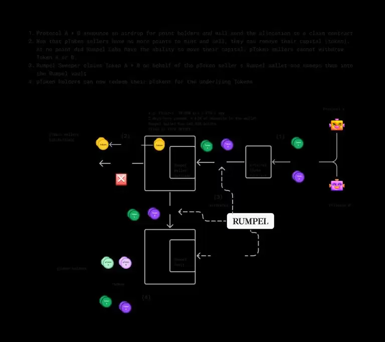 Rumpel Vault 负责处理 pToken 的铸造与销毁,并与 Oracle 紧密协同,确保积分余额和奖励机制同步。当发放积分的原始协议宣布空投时,Vault 会即时更新系统的赎回逻辑。