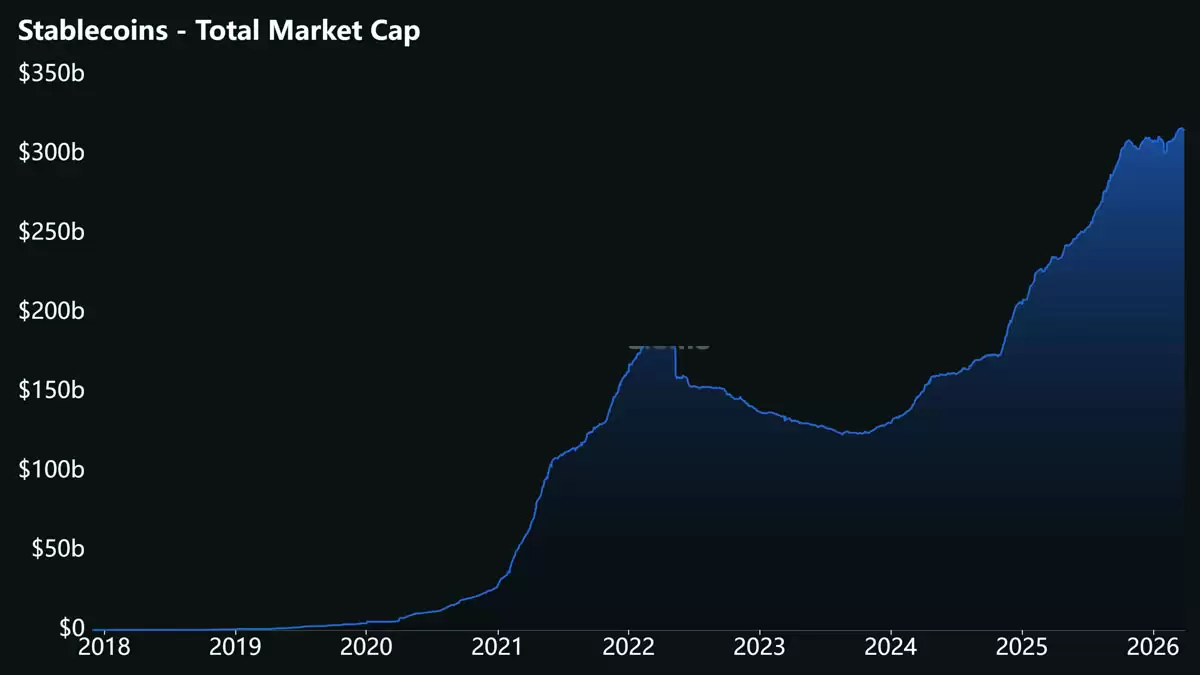 稳定币市值飙升至3000亿美元以上。来源:DefiLlama