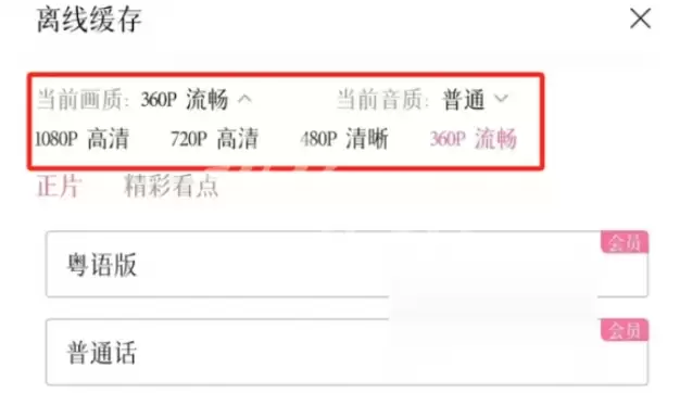 4. 接下来,按需选择你想要的清晰度(标清、高清、超清等)以及需要缓存的集数。