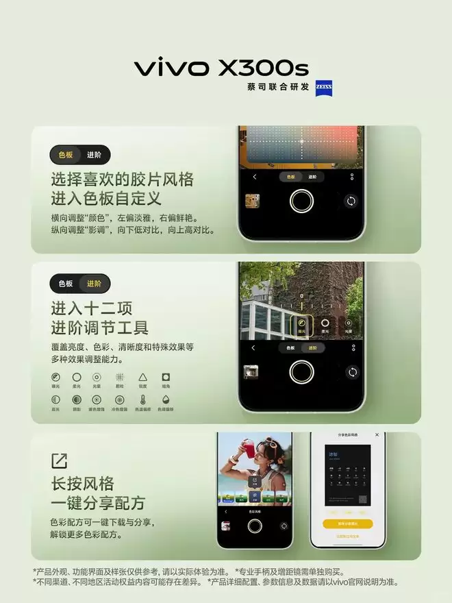 这意味着,X300Pro和X300的用户将率先体验到这一功能。具体来说,本月底前就能在相册内使用调色盘进行后期处理;而到了6月,更为便捷的相机内实时调色功能也将推送。对于其他机型用户,官方也承诺“未来会陆续开放”,值得期待。