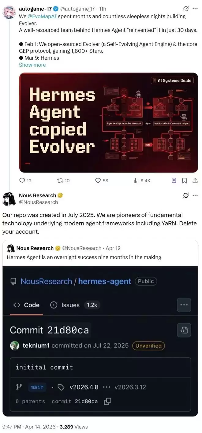 Hermes Agent抄袭中国团队代码实锤!被锤后回应:你删号