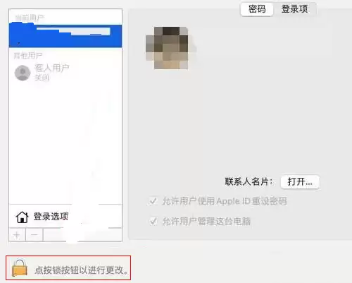 打开用户与群组界面后,你会发现左下角有一把锁形图标。点击它,并输入你的管理员密码进行解锁,这样才能修改用户设置。
