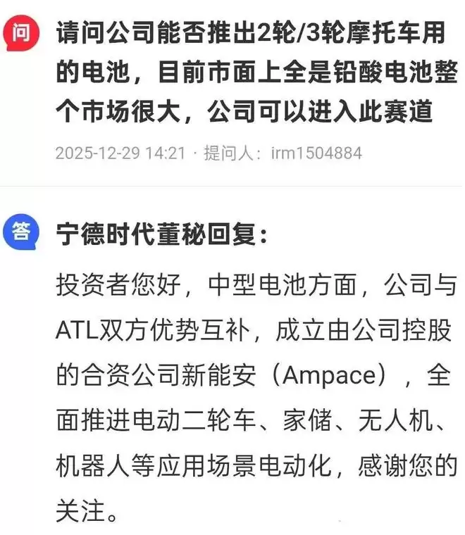 或许你对“厦门新能安科技有限公司”这个名字感到陌生,但在它所深耕的领域,这早已是一张王牌。这家由宁德时代控股70%、与新能源科技(ATL)合资成立的公司,核心战场正是电动两轮/三轮车、家储等小动力锂电市场,堪称宁德时代布局两轮领域的关键落子。
