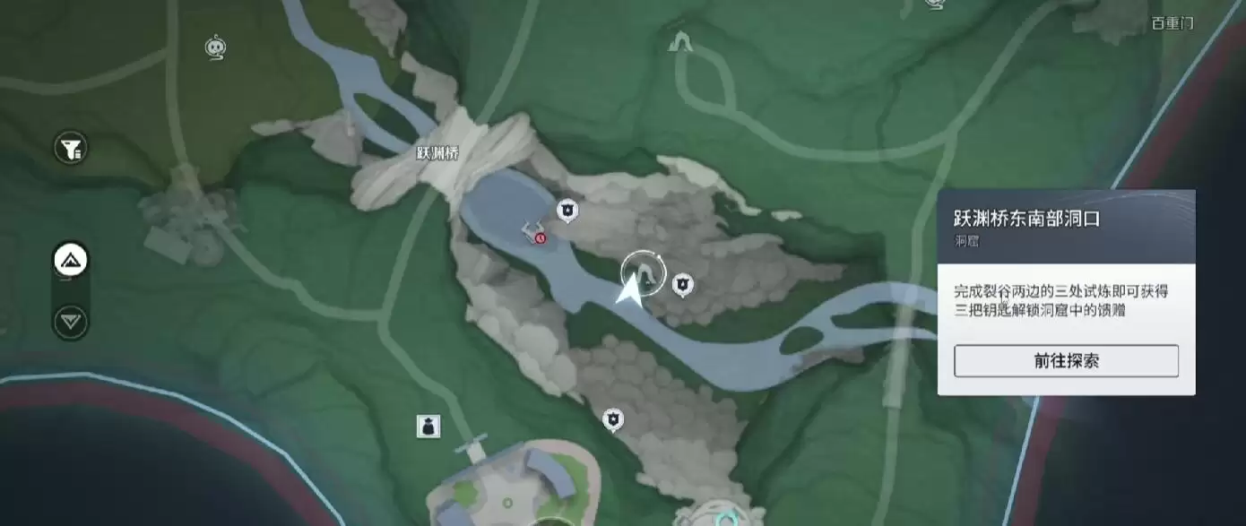 整个任务的起点位于跃渊桥的东南方向。地图上的任务标记非常清晰,玩家可以直接传送前往。抵达目标地点后,你会看到一个被强大能量封印的洞口,门上的铭文明确提示:需要集齐三把试炼之钥方可开启。这三把钥匙分别对应三处独立的试炼场所,玩家必须逐一挑战成功,完成“收集三钥”的核心目标,最终的金色凝武奖励便唾手可得。