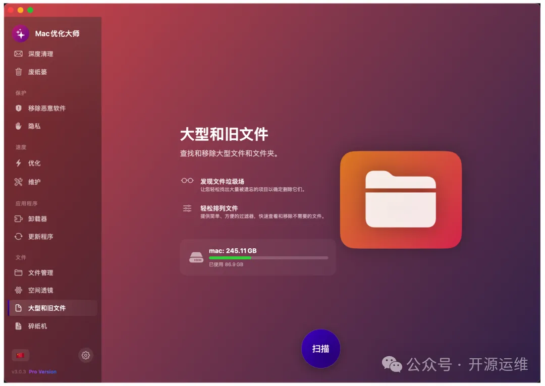 磁盘空间告急时,最头疼的就是不知道空间被谁“偷”走了。MacOptimizer的“大文件查找”功能堪称救星。它能快速扫描用户主目录,并将所有文件按大小降序排列。结果往往让人恍然大悟:原来是一个遗忘已久的视频文件、一个陈旧的虚拟机镜像,或者一堆下载后未清理的安装包,占用了数十GB的空间。定位之后,处理起来就有的放矢了。
