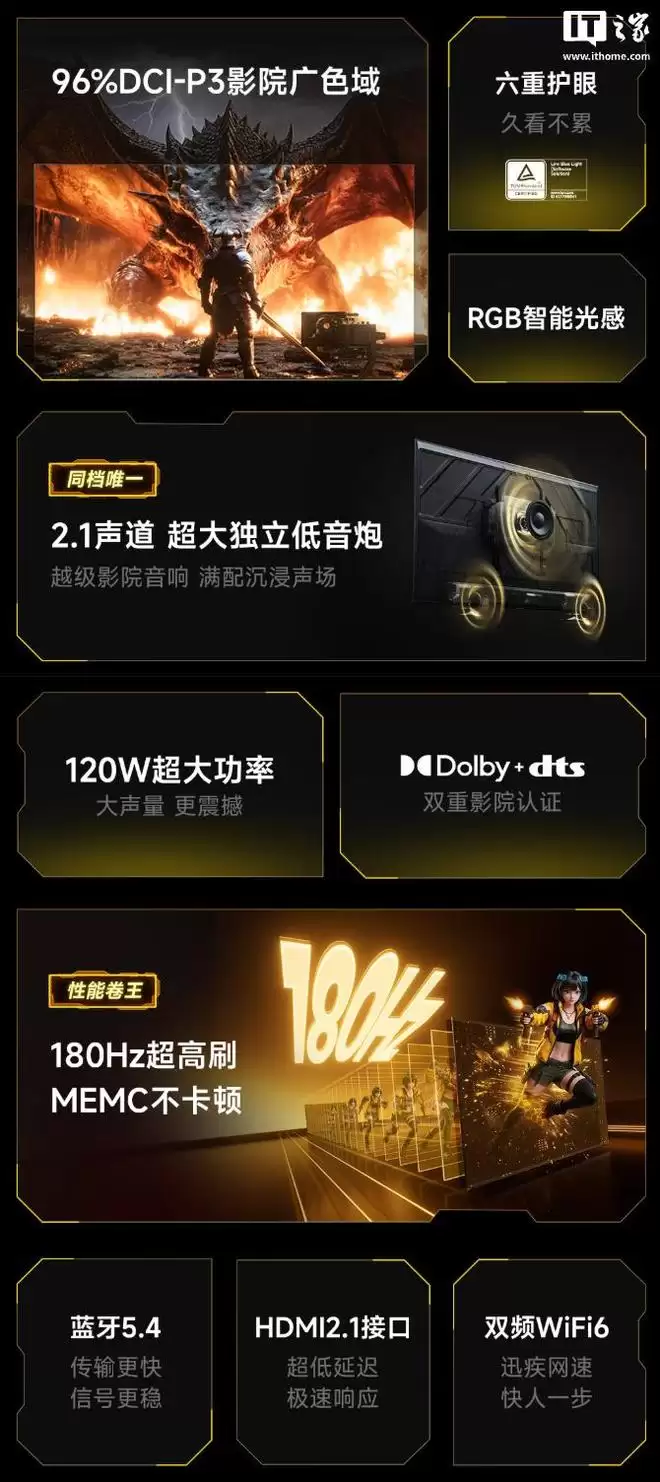 音效和连接性也是其主打卖点。音响系统采用了3单元扬声器加1.2L独立大腔体低音炮的组合,总功率达到了120W,意在营造更具冲击力的声场。无线连接方面,支持最新的蓝牙5.4和Wi-Fi 6协议。接口部分则提供了两个HDMI 2.1接口(对于游戏主机和高清播放器非常友好)以及两个USB-A 2.0接口,扩展能力足以满足日常家用需求。
