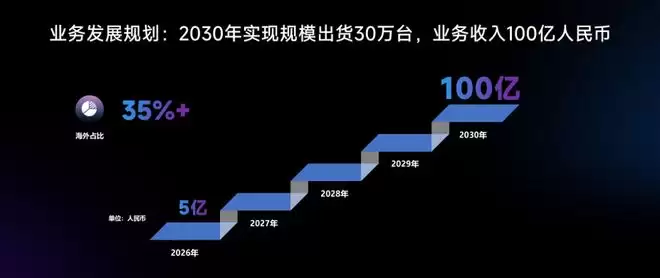 四足机器人则是另一个快速崛起的细分赛道。邱恒透露,今年一季度酷拓的销售规模已超过去年一整年,增长势头迅猛。预计到2030年,酷拓将实现年出货30万台、营收100亿元的目标,其中海外收入占比将超过35%。