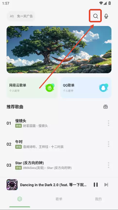 想要快速找到心仪的歌曲吗?岸听音乐App的搜索功能设计得非常便捷。操作的第一步,是打开App并进入首页。在首页界面的右上角,您会看到一个设计醒目的放大镜图标,点击这个图标即可直接进入核心搜索页面。