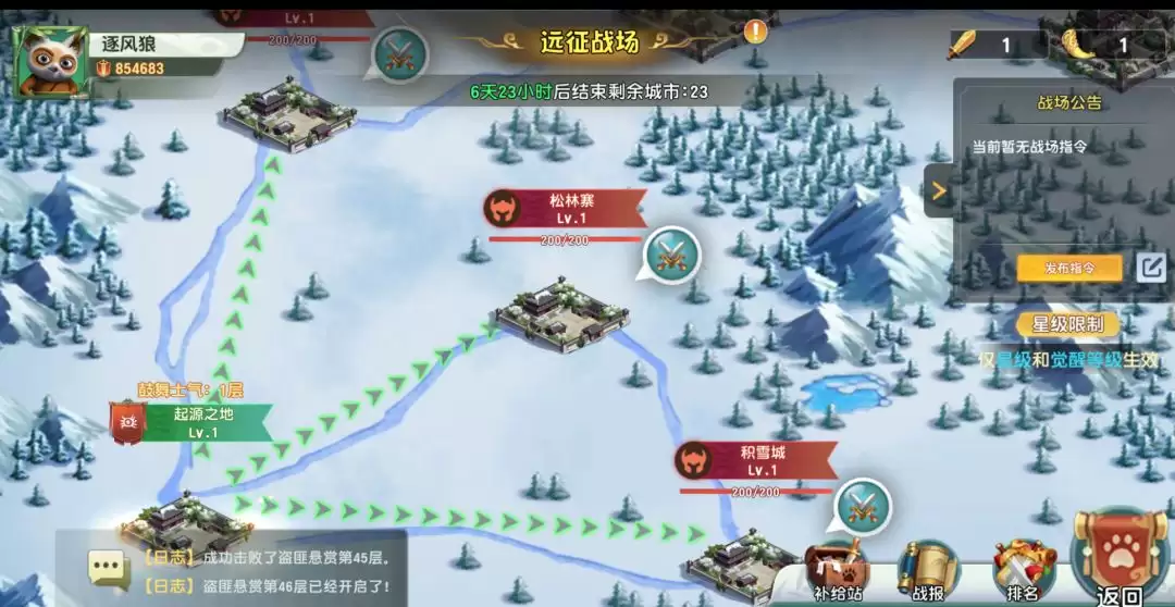 1. 远征战场是游戏内核心的“花色”匹配玩法之一(另一处为四圣兽塔)。其核心规则是根据每座城池的要求,上阵对应花色的英雄进行挑战。