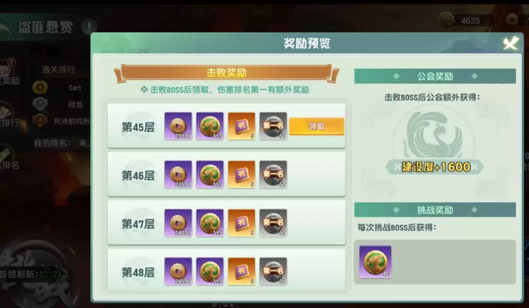 3. 每只BOSS被击败后,会有10分钟的刷新间隔,请注意把握挑战节奏。