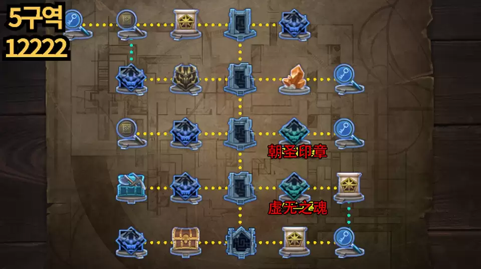 需要特别说明的是,根据现有情报,最后这张图右下角的两个房间内容尚未完全确认。然而,结合DNF悖论迷宫第5层的整体奖励机制和地图逻辑进行推断,这两个位置极有可能分别对应“100张深渊派对邀请函”和“古代遗物”奖励。客观而言,在当前游戏版本环境下,这两类资源的实用性与优先级已大不如前。因此,在规划你的DNF悖论迷宫攻略路线时,建议将这两个房间视为次要选择,优先考虑通往更高价值奖励或关键路径的房间,以最大化你的通关收益。