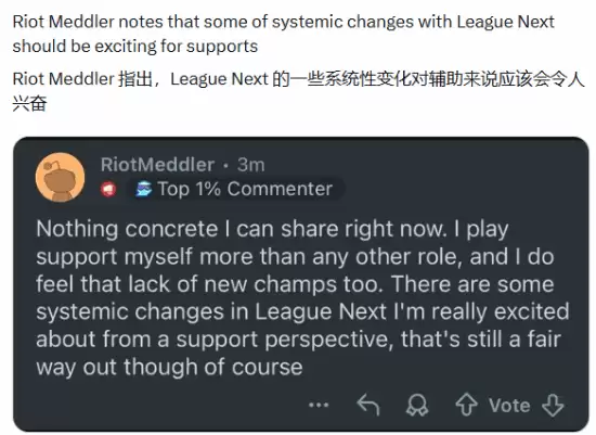 紧接着,他抛出了关键信息:辅助位的重大调整,将在2027年的“League Next”更新中正式落地。Meddler进一步解释:“在‘League Next’中,有一些从辅助视角来看我非常期待的系统性改动。当然,那还需要一段时间。” 这里的“系统性改动”一词值得玩味,它暗示改变可能不止于英雄本身,更关乎辅助位的底层玩法与体验。