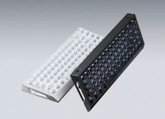 从外观设计来看,这款键盘提供了银翼和幻影两种配色可选。它延续了系列主打的机甲战舰美学风格,机身采用铝合金阳极氧化工艺CNC加工而成,质感与耐用性兼备。键盘侧面配备了RGB氛围灯,而键帽则采用了原厂高度的雾透全透光设计,与TTC宝马磁轴相搭配,在灯光效果和触发体验上值得期待。