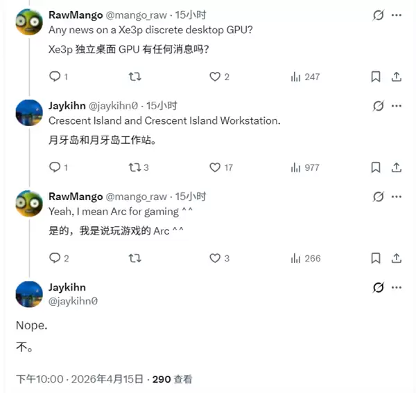 2026年4月16日,知名行业爆料人Jaykihn披露了英特尔图形产品线的最新战略。基于下一代Xe3P图形架构、代号为“Crescent Island”的全新独立显卡系列,其市场定位已明确:并非针对主流游戏玩家,而是精准聚焦于人工智能推理加速与专业工作站应用。目前曝光的Crescent Island芯片包含标准版与工作站版两个型号。至于面向主流游戏市场的锐炫(Arc)独立显卡后续产品,其具体路线图目前仍处于待定状态。