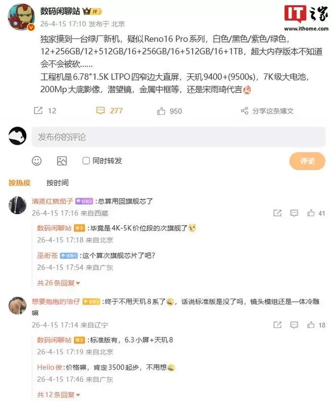 话说回来,为什么这次芯片升级能引起这么大关注?博主一句话点明了关键:“毕竟是4K-5K价位段的次旗舰了。”定位上探,配置自然要跟上。还有网友关心标准版的情况,博主也确认了标准版的存在,将会采用6.3英寸小屏,并搭载天玑8系处理器。看来,Reno 16系列是要在性能和差异化上,双线并进了。