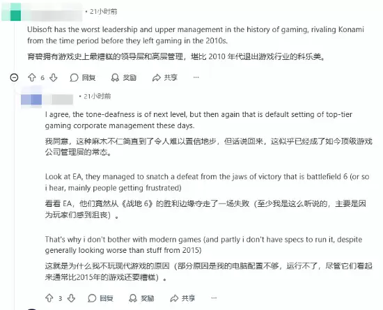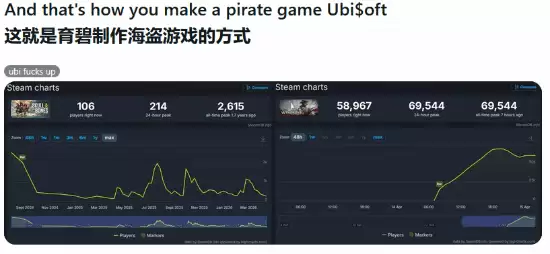 如此悬殊的人气与口碑对比,自然没能逃过玩家们的眼睛,尤其是在海外社区,不少玩家借此机会对育碧表达了直接的不满。