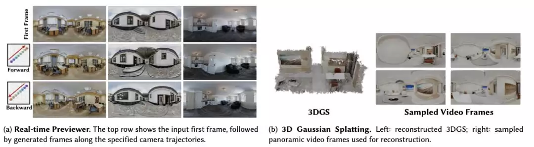 在效率方面,作者基于self-forcing机制,将完整模型蒸馏为一个轻量级的自回归预览模型,实现了接近实时的视频生成。这个轻量模型在保持整体场景结构的同时,能在约7秒内生成81帧全景视频,相比原始模型速度大幅提升,为交互式应用打开了大门。同时,框架还支持先生成低分辨率视频,再通过细化模块提升至高分辨率(如720p)的灵活工作流。