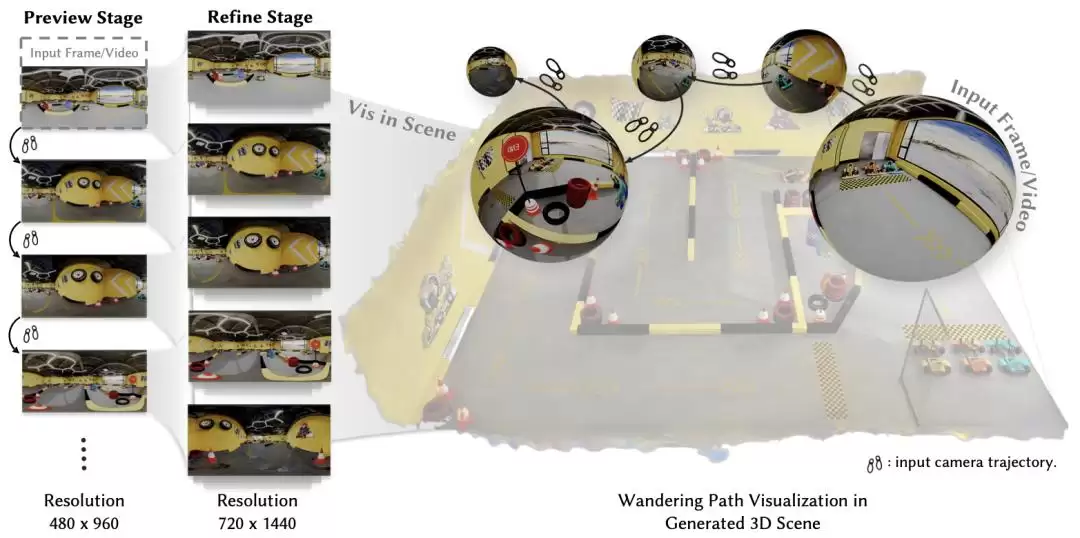 这项工作的核心思路颇为巧妙:它引入全景视频作为一种统一的表示方法,并结合了一套“由粗到精”的分阶段生成框架。这套组合拳,在长时序条件下显著提升了视频的空间一致性与时间连贯性,使得模型能够沿着指定路径生成连续演化的视频序列。可以说,这是从“片段生成”迈向“连续过程生成”的关键一步。