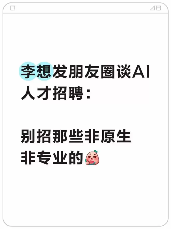 最近,理想汽车创始人李想在朋友圈分享了一段关于人工智能人才招聘的看法,观点直接,引发了业内不少讨论。