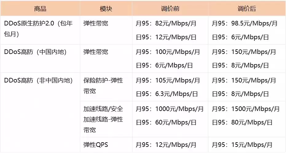 阿里云调整DDoS防护产品定价,弹性95功能价格将上调