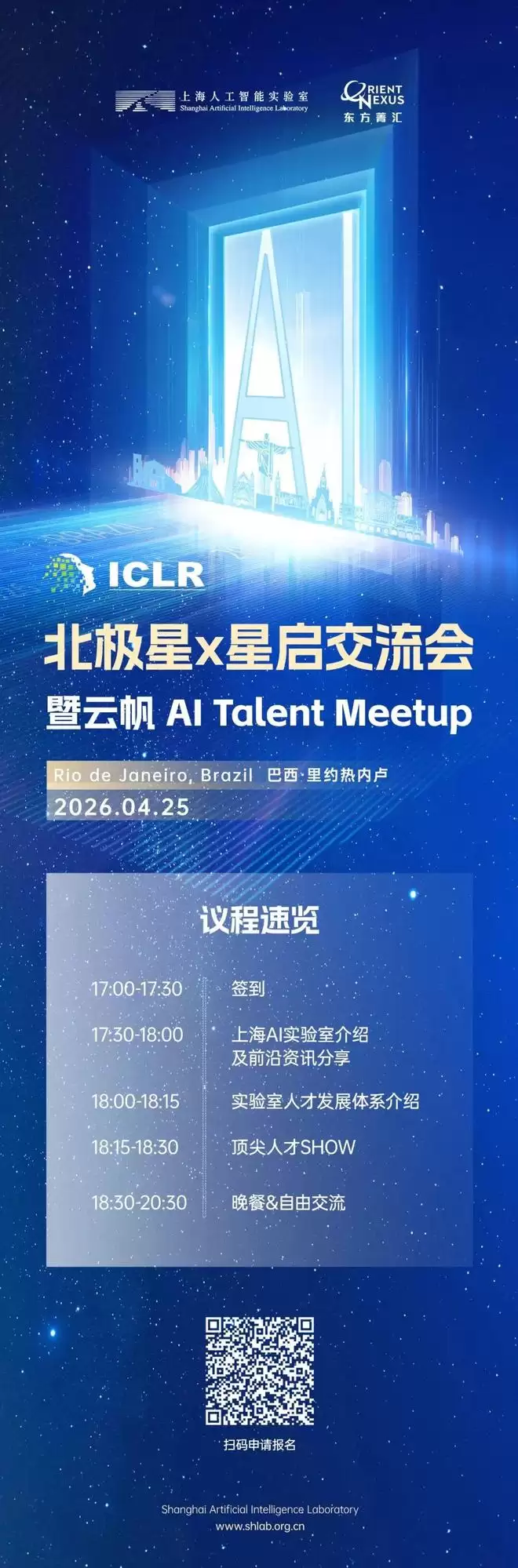 在这场全球智力汇聚的盛会期间,一个备受瞩目的同期活动即将登场。4月25日里约时间傍晚,上海人工智能实验室(上海AI实验室)将主办“北极星 X 星启交流会暨云帆 AI Talent Meetup”。
