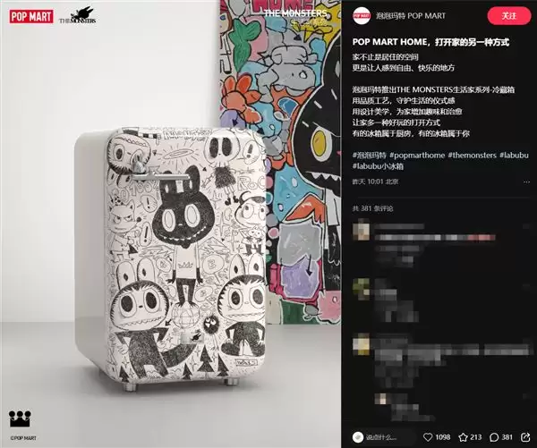 盲盒巨头泡泡玛特进军家电行业!首款LABUBU小冰箱亮相