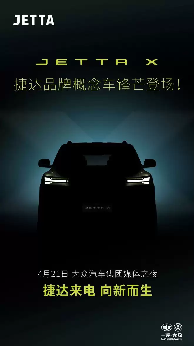捷达品牌概念车JETTA X官宣,4月21日亮相