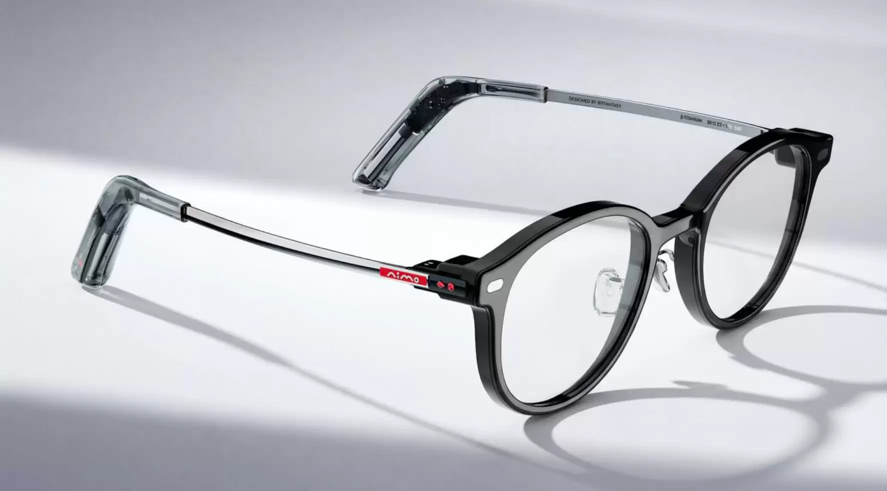 为了让佩戴体验足够舒适,NIMO在结构设计上花了不少心思。为了达成全天佩戴无压痕的目标,研发团队将光机置于铰链、微型电池放在镜腿末端,传感器则分布在侧面,实现了镜框和镜腿50:50的分散式配重,显著提升了佩戴的舒适度。