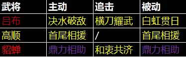 追击关系设置为:高顺和貂蝉追击吕布,吕布追击貂蝉,形成有效的伤害与增益循环。