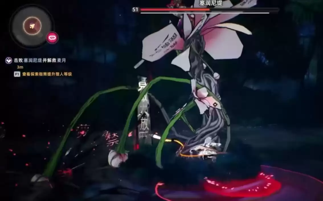 当战斗进入后半程,塞润尼缇的生命值降至约50%时,会触发第二阶段。此时战场局势升级:Boss将召唤巨型花瓣,并施放覆盖全屏的腐蚀性攻击。进入此阶段后,其伤害能力显著提升,同时会给命中的玩家附加持续掉血的负面状态。这直接考验队伍的生存承伤能力与治疗续航水平。值得庆幸的是,塞润尼缇的所有技能在释放前均有较为明显的起手动作与地面预警区域。因此,能否精准判断时机、成功进行闪避,便成为决定整场战斗胜负的核心要点。
