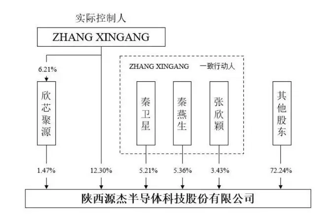 这里有几组关键的一致行动关系:ZHANG XINGANG和张欣颖为兄妹;秦燕生和秦卫星为兄弟;并且,ZHANG XINGANG与秦燕生、秦卫星、张欣颖以及陕西欣芯聚源管理咨询合伙企业构成一致行动人。通过这些关系,ZHANG XINGANG博士合计控制公司约27.76%的股权,是公司的实际控制人。