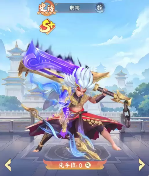 典韦天生具备卓越的防御属性。其怒气技能“古之恶来”可对敌方前排造成155%的伤害,并为自己提升20%的伤害反弹概率。反弹伤害的数值直接基于典韦自身的攻击力,这使得堆叠一定攻击属性的典韦能让攻击他的敌人“自食其果”。