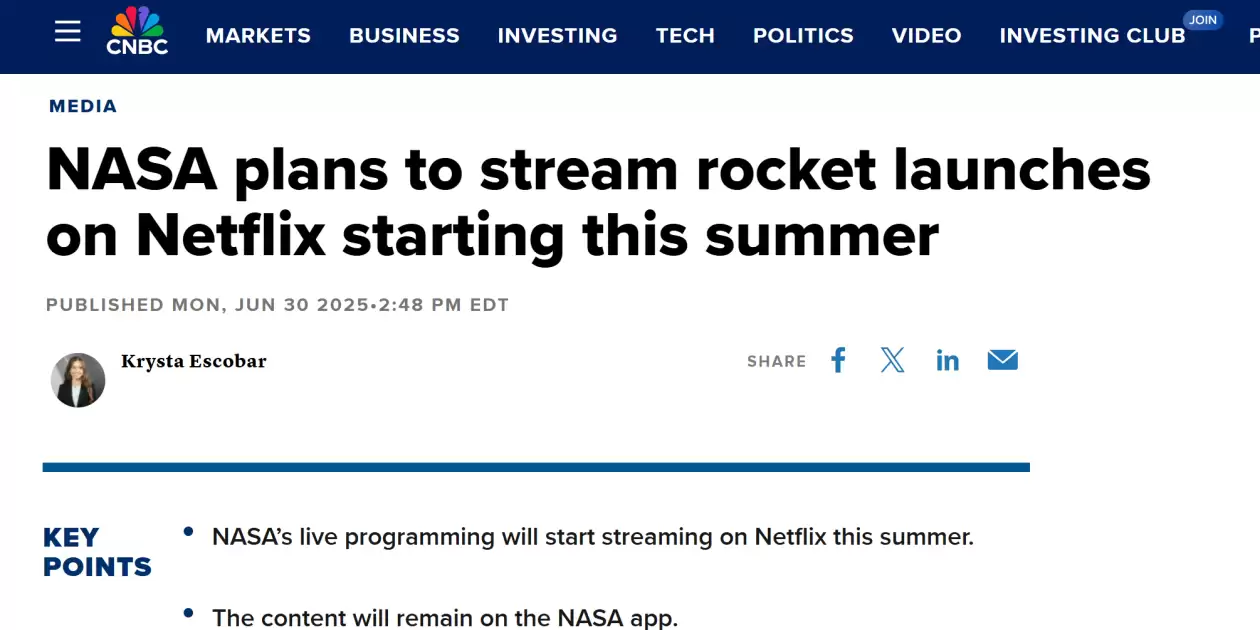 显然,NASA看中的是Netflix那覆盖全球超过7亿用户的庞大网络。在当今的媒体环境下,这种合作无疑能将其科学发现与探索成果,触达以往难以想象的广泛人群,从而实质性提升全球公众对太空事业的关注与参与感。