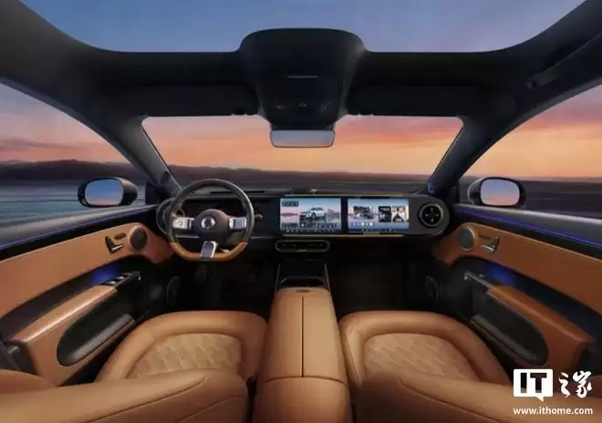 从公布的官图来看,精灵#6 EHD在座舱氛围的营造上颇下功夫。新车提供了格律黄、玄影黑和原野棕三种内饰色彩主题,以满足不同用户的审美偏好。车内最吸睛的莫过于那块贯穿式双联屏,科技感直接拉满。而悬浮式升降扬声器采用了独特的飞碟造型,搭配7.1.4声道的森海塞尔殿堂级音响系统,显然是瞄准了对于视听享受有高要求的用户。座椅则采用了零压一体式运动设计,意在兼顾包裹感与长途舒适性。