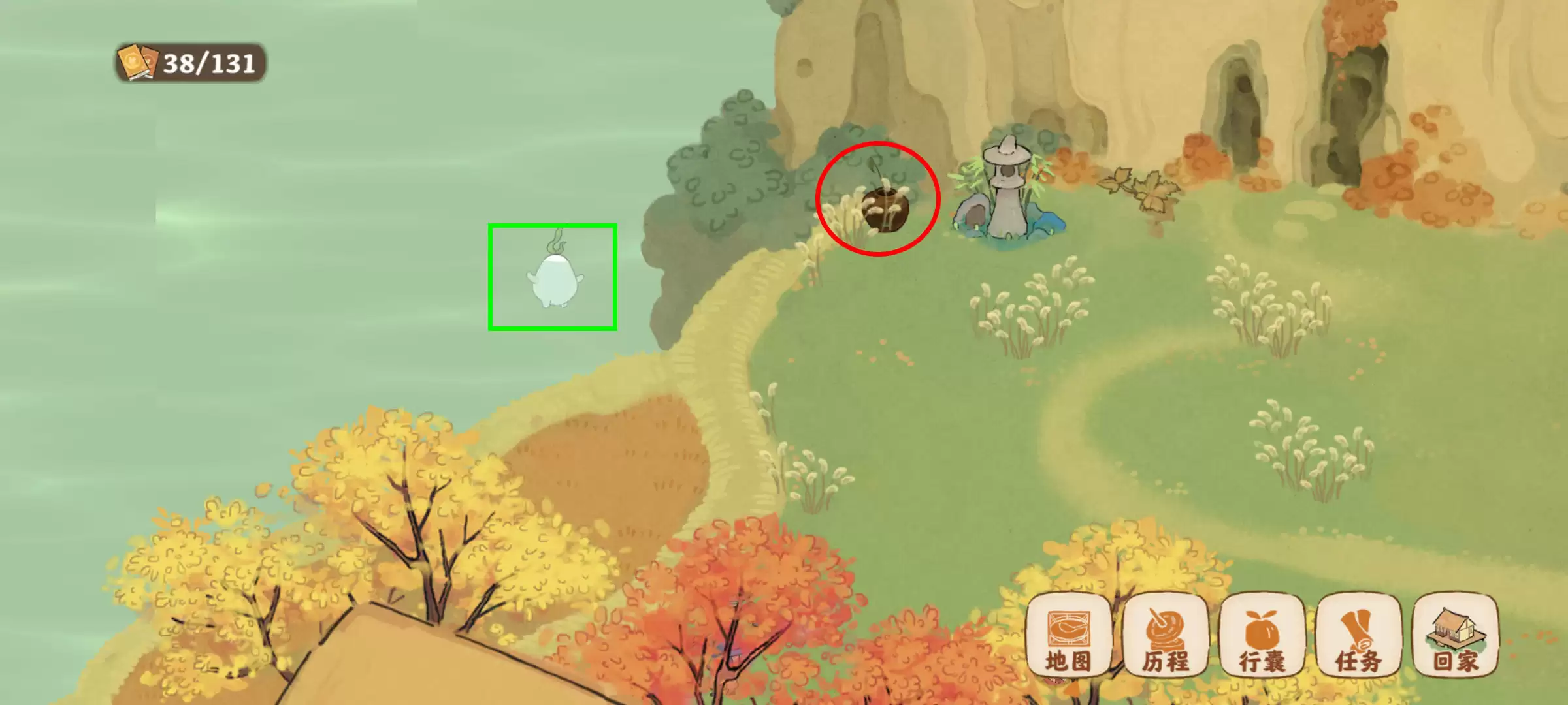 图解重要提示:所有红色圆圈标记处为宝物位置,所有绿色方框标示处为萝卜位置。请根据标记仔细查找,可极大提升搜索效率。