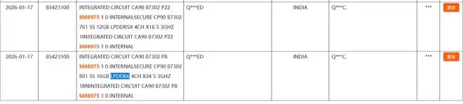 话说回来,这款“SM8975”芯片并非首次进入公众视野。根据此前的报道,它已经出现在海关的舱单记录中,业内普遍将其认定为即将发布的骁龙 8 Elite Gen6 Pro。参数信息显示,这颗处理器最高能够支持 16GB 的 LPDDR6 内存,这与早期的爆料内容完全吻合,进一步增加了其身份的可信度。