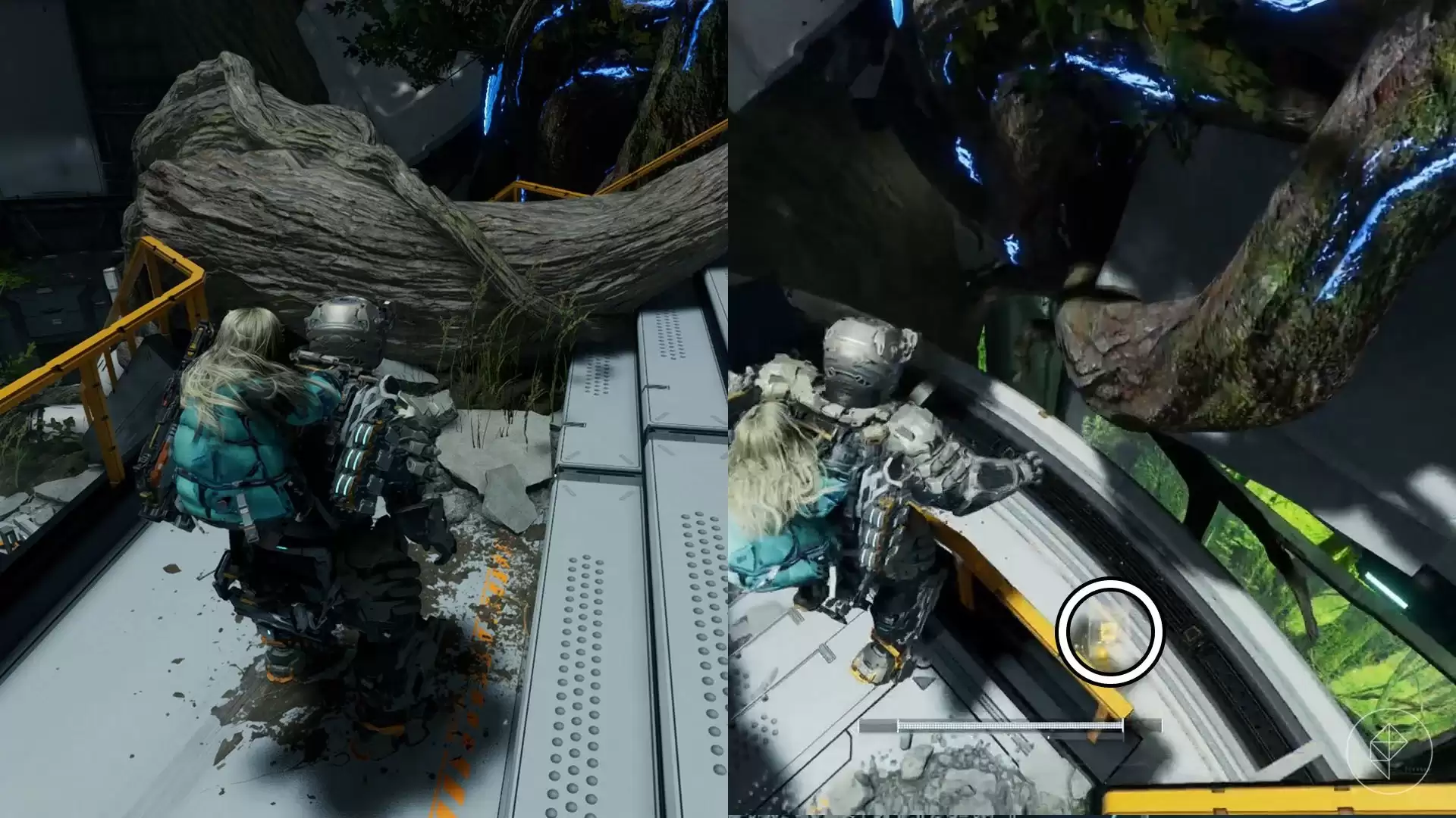 同样在通过芯片树后,不要前往上述组件位置,而是选择向左转。路径在此分岔,请选择右侧路线。攀爬岩石并沿走廊下行,会发现一个隐藏在全息投影墙后的升级组件。